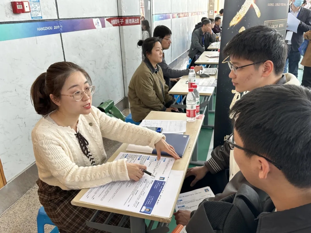 学院高度重视此次招聘会,党委副书记陆秋萍、学院辅导员唐艺林、沈祯前往招聘会,细心地询问招聘单位的详细情况,耐心解答毕业生的问题。