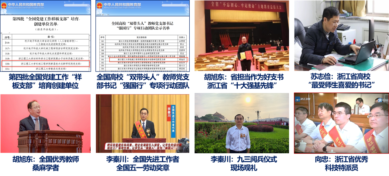 团队深入贯彻习近平总书记关于教育的重要论述,将立德树人根本任务贯穿团队建设全过程,创新“党建+师德”教学相长机制,获全国党建工作“样板支部”、全国高校“双带头人”教师党支部书记工作室等国家级党建荣誉。团队成员胡旭东荣获浙江省担当作为好支书、浙江省“十大强基先锋”,苏志俭获评浙江省高校“最受师生喜爱的书记”,为师德建设提供坚实保障。