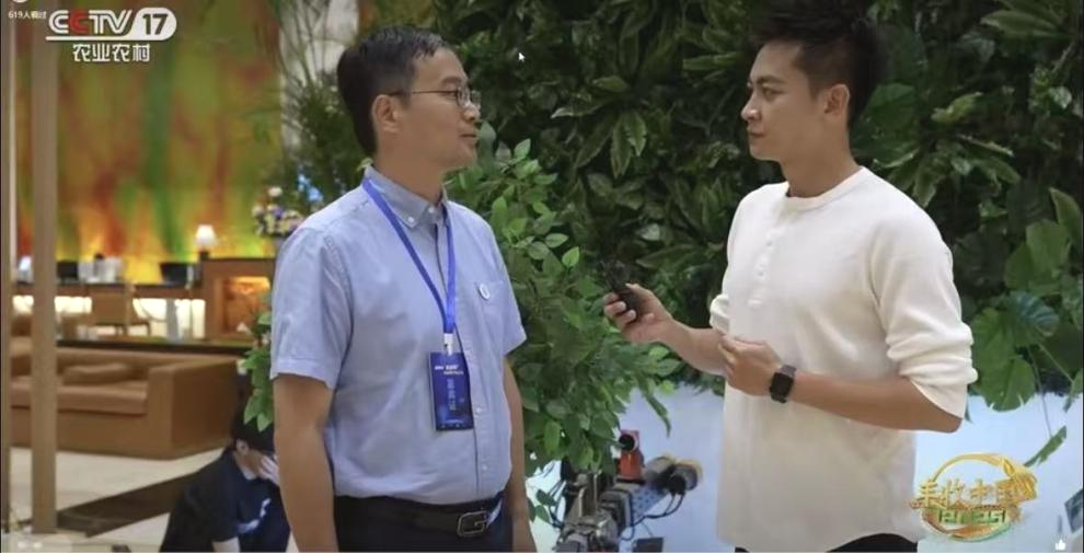 在展馆现场,团队的出色展示吸引了权威媒体的关注。杜小强教授应邀接受了中央广播电视总台的采访。面对央视CCTV-17的镜头,杜老师介绍道:“我们带来的这两台机器人,分别瞄准了温室农业和丘陵山地农业两大场景的自动化瓶颈。番茄采摘打叶机器人实现了采收与管理的精准化,而丘陵山地采摘机器人则突破了地形的限制,提升了作业效率。我们的目标,就是让智能装备真正成为农民的‘好帮手’。”