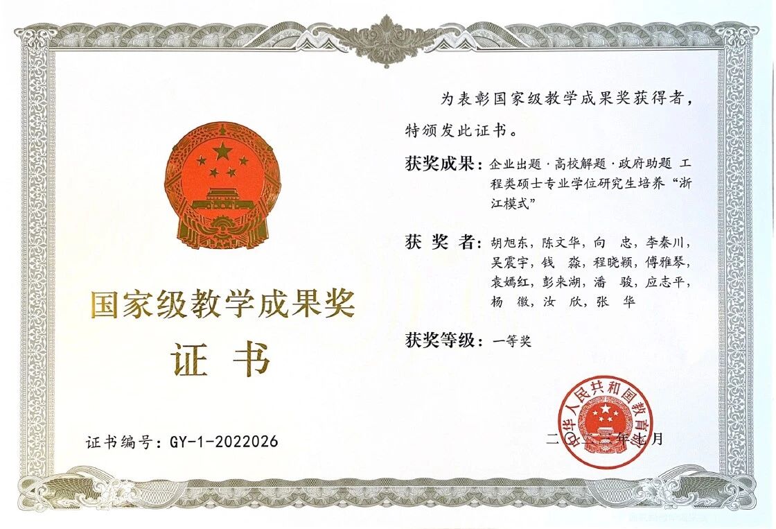 团队着力破解工程硕士培养“同质化”“唯论文”难题,首创“企业出题·高校解题·政府助题”的浙江模式,闯出一条为地方经济发展和企业科技创新精准输送人才的新路子,牵头获高等教育(研究生)国家级教学成果一等奖。博士生谢建东获第12届上银优秀机械博士论文金奖(地方院校首次)、博士生徐灵敏入选中国科协“青年人才托举工程”。